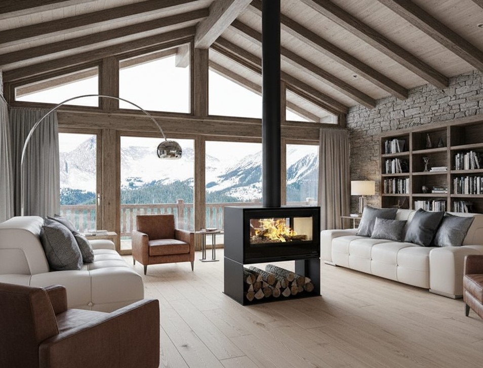 Double-sided wood-burning stove, ideal for separating environments