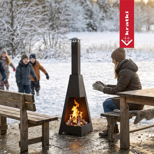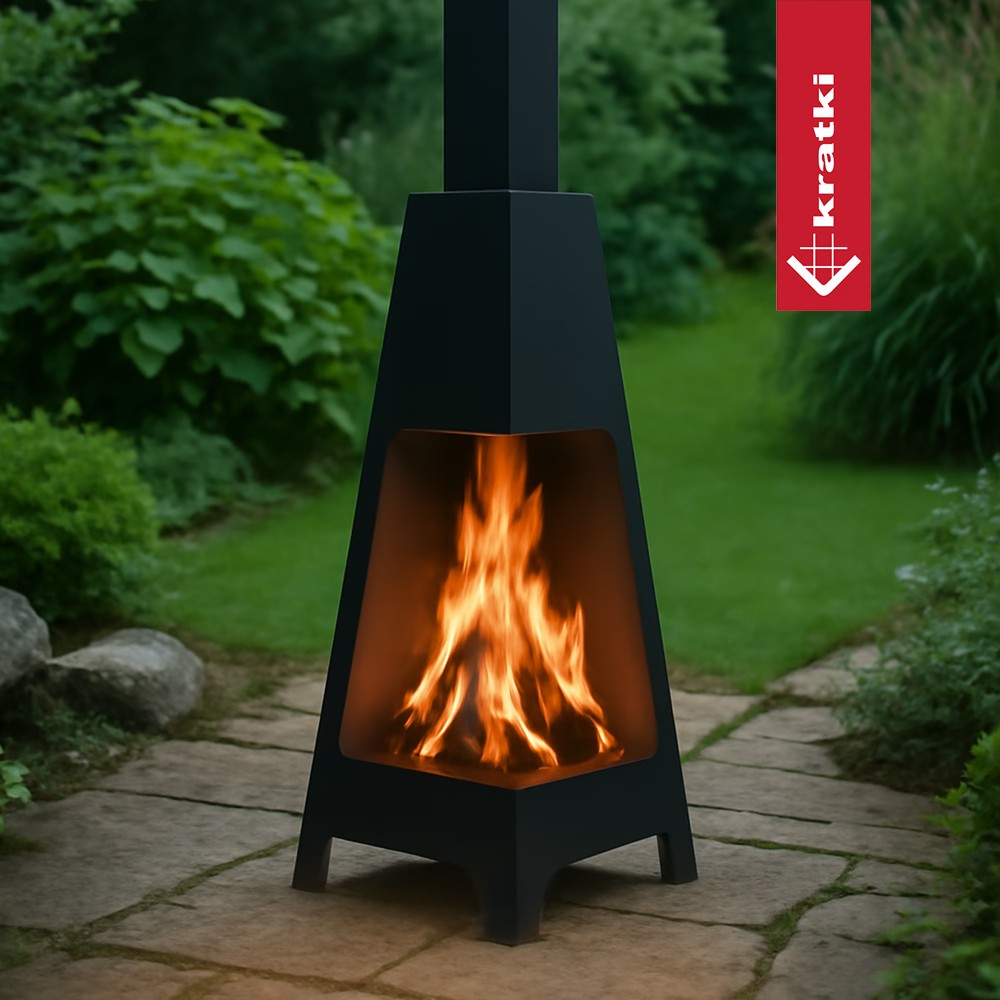 The PYLOS garden fire pit from KRATKI is a mobile fireplace you can set up wherever you like: on the terrace, in the garden, or on a plot outside the city.