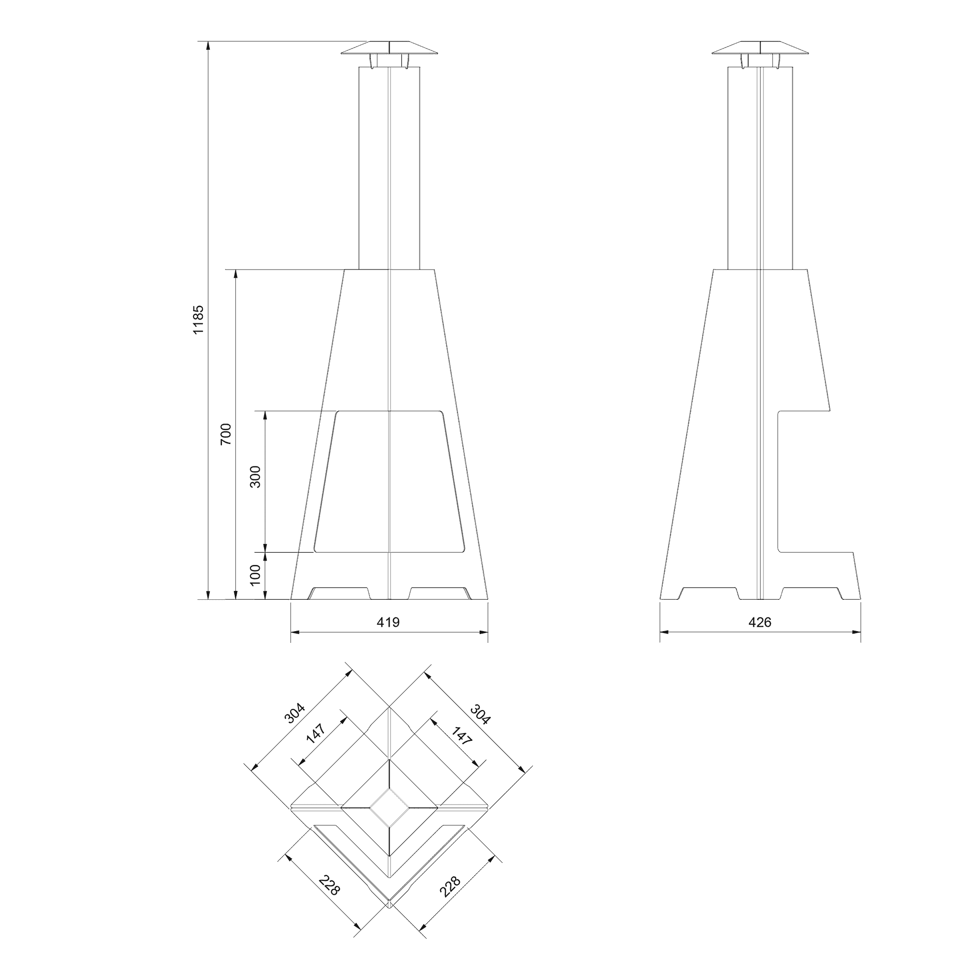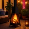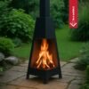 The modern design of the fire pit with a detachable chimney allows PYLOS to also function as a wood-fired terrace heater, providing warmth and a unique ambiance even on cooler evenings.