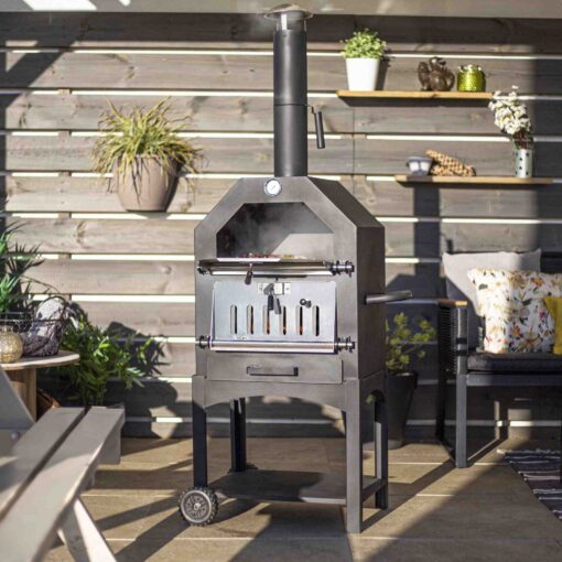 The handy thermometer makes it easy to bake a perfect pizza or perfectly grill meat. You can use wood, briquettes or charcoal for this pizza oven. The choice is yours!