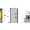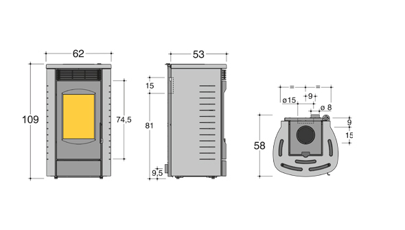 Rounded lines for this stove; it revises the modern flavour adding a soft touch. The front recalls the curved lines of the structure with the slightly shaped door in cast iron. Cladding in painted sheet-steel with majolica cover. Structure in black painted steel.