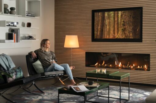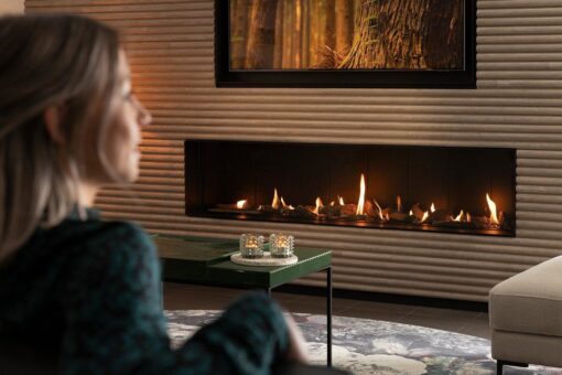 It’s the top of the bill, the Trimline 170H Front. The higher glass of 38cm gives you that little extra flame experience and is the pinnacle of luxury. Ours is build-in a wall and finished off with a luxury suede leather. Giving it a look you enjoy every single day.