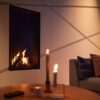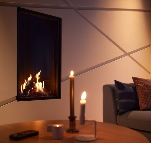 The standard version of this fireplace has a burner bed made of wooden logs and is equipped with a double burner. You can also opt for a built-in LED bed to add even more ambiance. On top of that, it comes with the Ecomax remote control and you have the options of adding Wi-Fi-control with our Trimline Fires app.