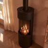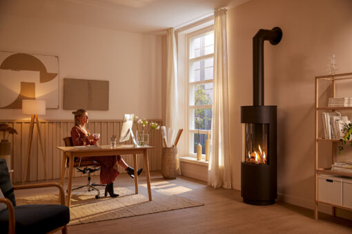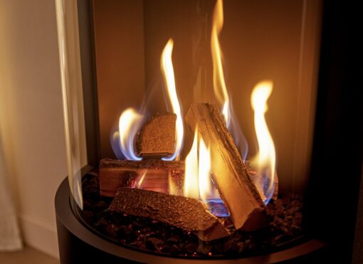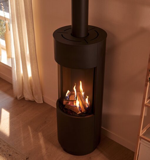 This round gas stove burns so nice and with its amazing rounded glass you have a wide look on the flames.